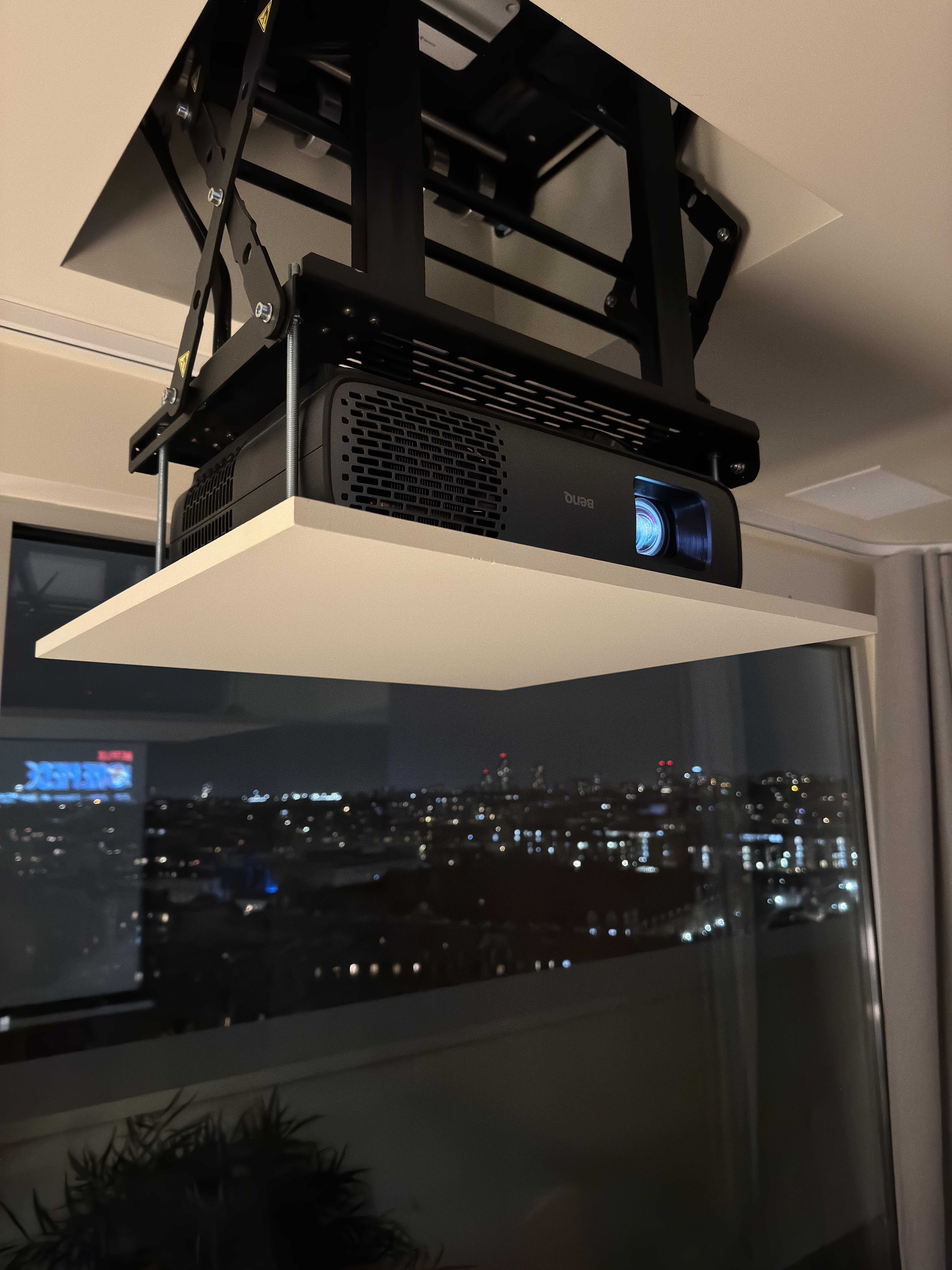 Un lift motorisé pour vidéoprojecteur est un système d’élévation encastré dans le plafond, conçu pour faire descendre et remonter automatiquement le projecteur. Concrètement, le vidéoprojecteur est fixé sur une plateforme intégrée dans un caisson. Ce caisson est lui-même installé dans un faux plafond ou une structure adaptée. À l’activation (via télécommande, interrupteur ou système domotique), le mécanisme motorisé descend en douceur jusqu’à la position de projection idéale. Une fois la séance terminée, le lift remonte et disparaît complètement, laissant un plafond parfaitement épuré.
